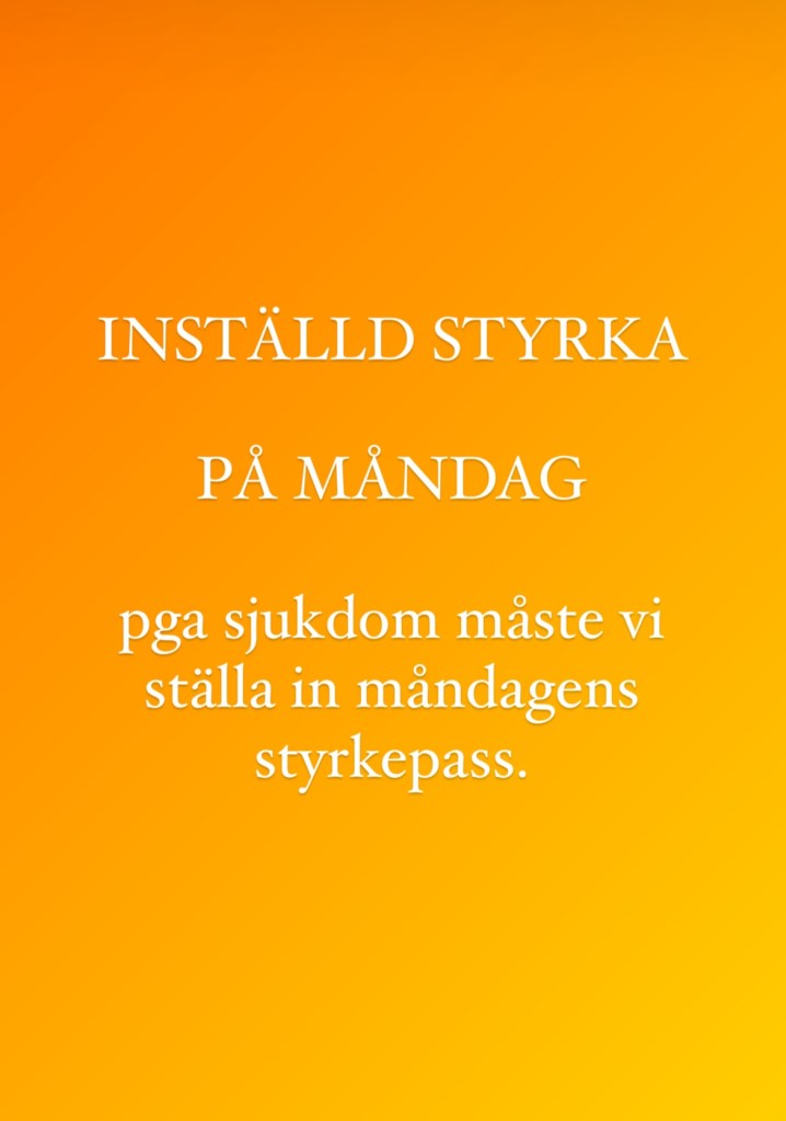 Tyvärr måste vi ställa in måndagens styrkepass pga sjukdom. Men vi ses i veckan på våra andra pass! ✨