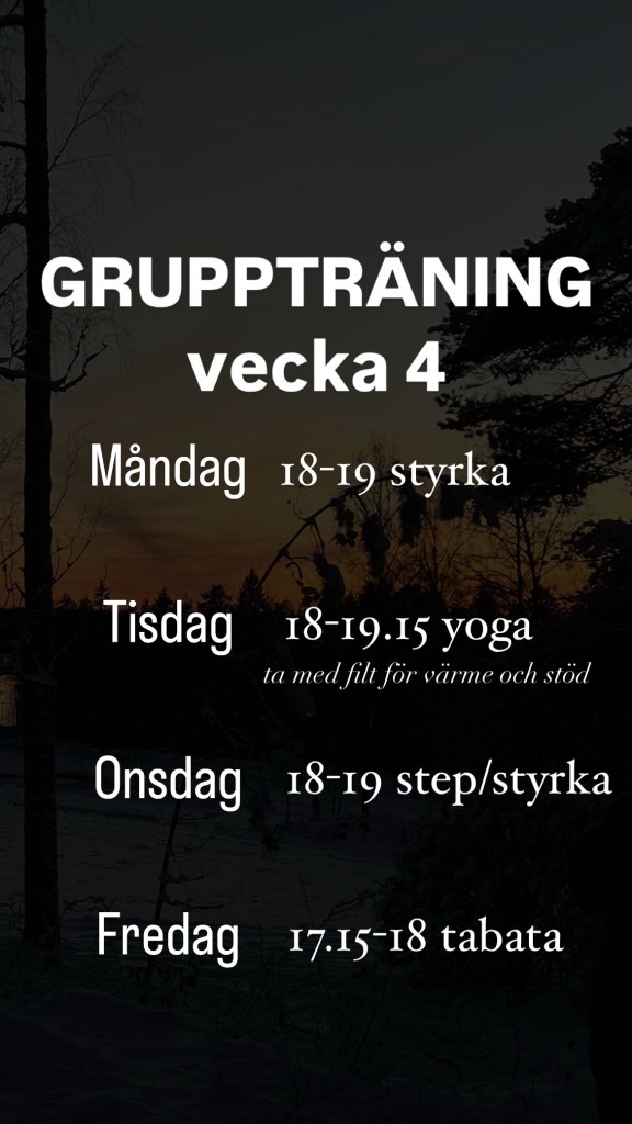 Styrka, Yoga, Step/Styrka och Tabata. En härligt energifylld vecka väntar! Vi ses 🤩😍